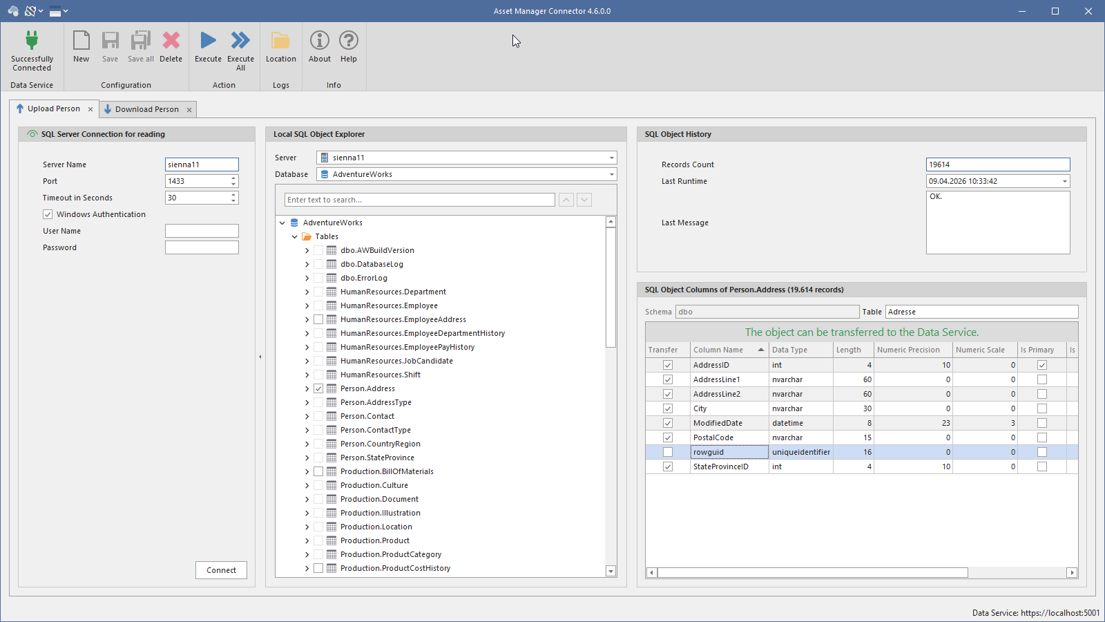 - Upload: Daten aus einer SQL-Quelle in den Asset Manager übertragen
