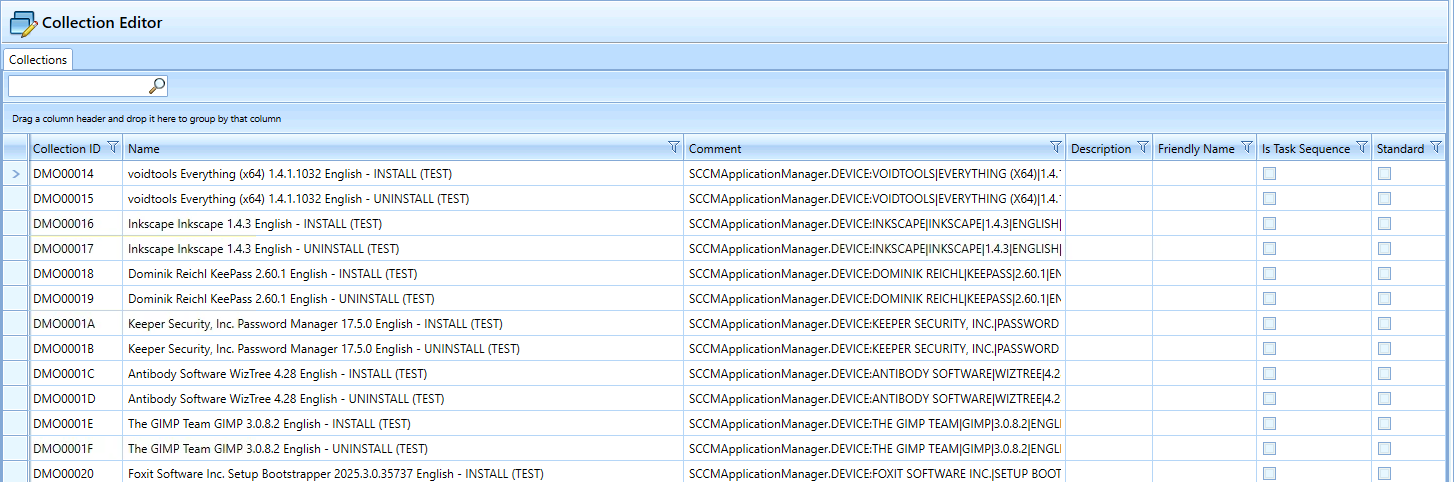 Das „Collection Editor“-Plugin ermöglicht das Hinzufügen und Verwalten zusätzlicher Informationen zu SCCM‑Collections. Diese Zusatzinformationen werden in der SCCM Manager-Datenbank gespeichert und können beispielsweise zur Kennzeichnung von Collections genutzt werden.